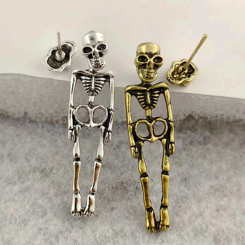 • Античное Серебро Серьги-гвоздики из сплава на Хэллоуин, скелет, античное серебро, 40 мм