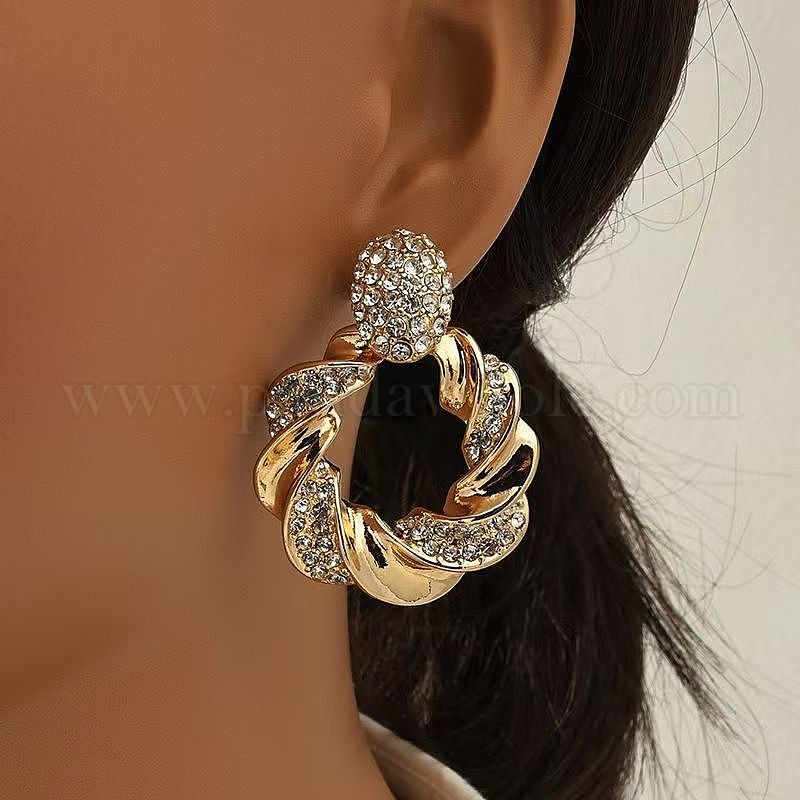 Серьги-гвоздики из сплава с кристаллами и стразами, твист кольцо