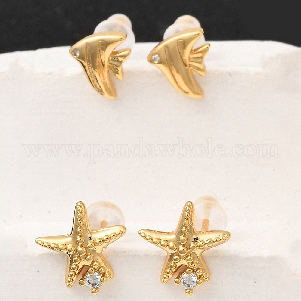 Серьги-гвоздики из латунного микро-паве, с 316 хирургическими штифтами из нержавеющей стали, без никеля , реальный 18 k позолоченный