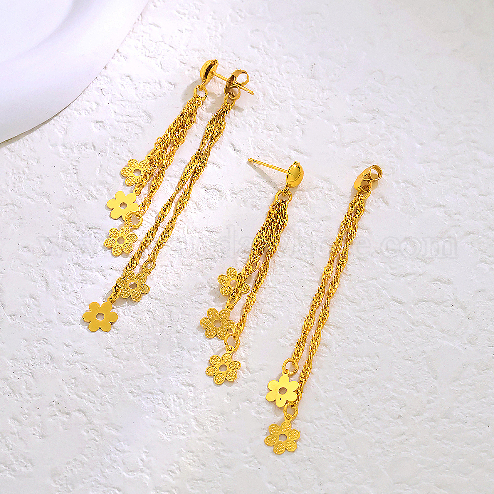 • Настоящее золото 18K Серьги-гвоздики с кисточками из латуни, цепочка-оберег, реальный 18 k позолоченный, 80 мм