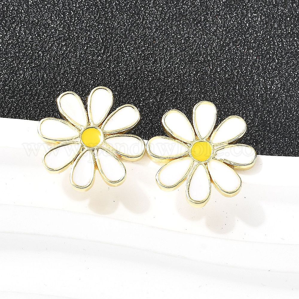 Серьги-гвоздики с цветком из латуни и эмали, стойки покрытие, долговечный, без кадмия и без свинца