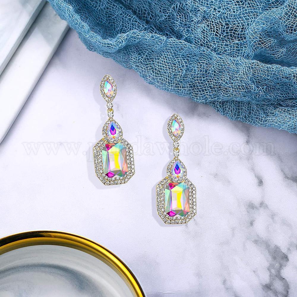 Латунные горный хрусталь болтаться серьги, со стеклом, прямоугольные
