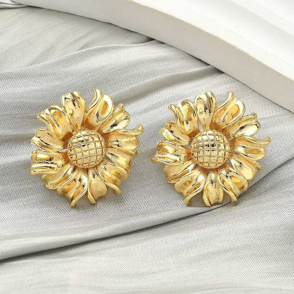 • Настоящее золото 18K Латунные серьги-гвоздики с подсолнухом, стойки покрытие, долговечный, без кадмия и без свинца, реальный 18 k позолоченный, 25x26.5 мм