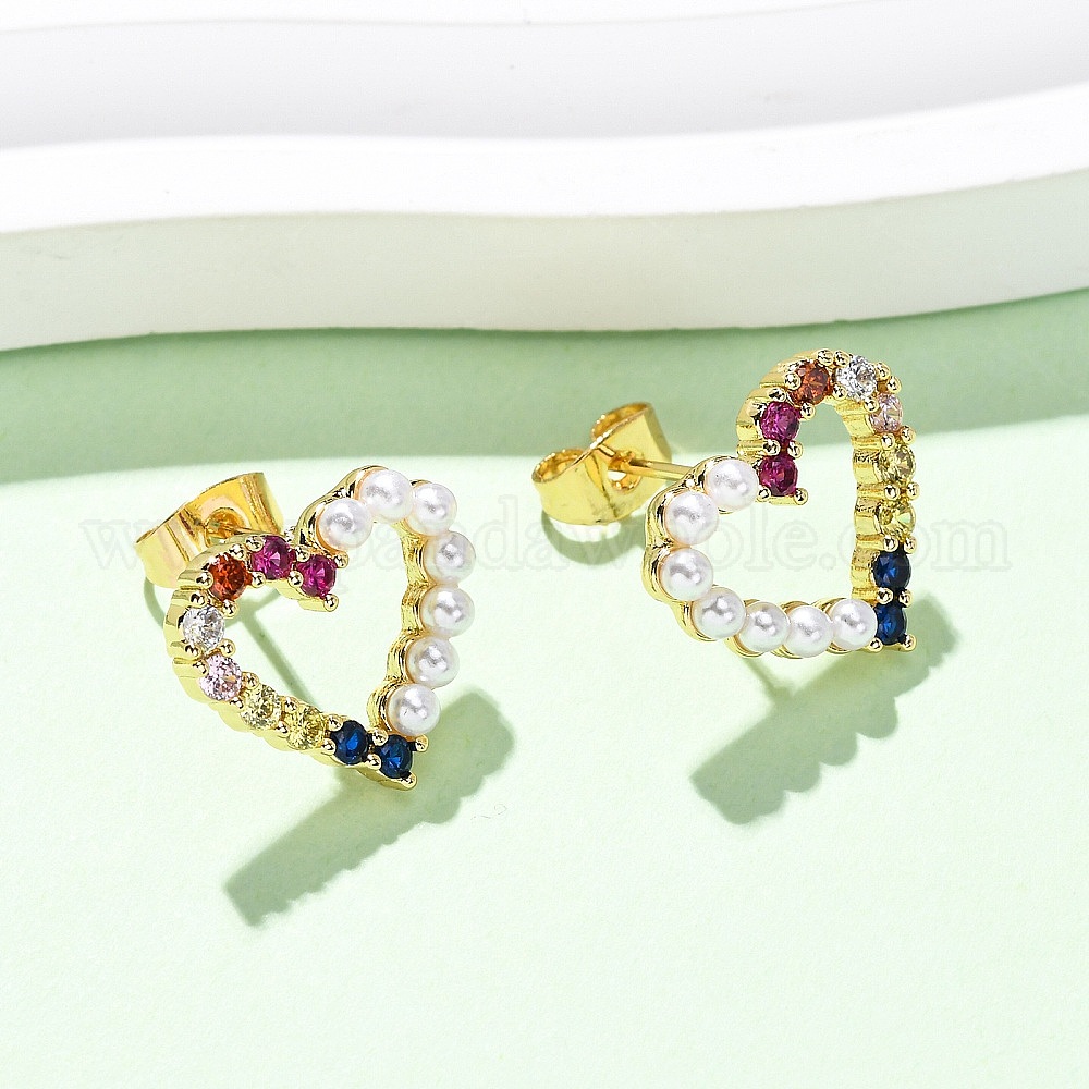 Серьги-гвоздики в форме сердца из латуни с фианитом и кубическим цирконием, с ABS имитации жемчуга