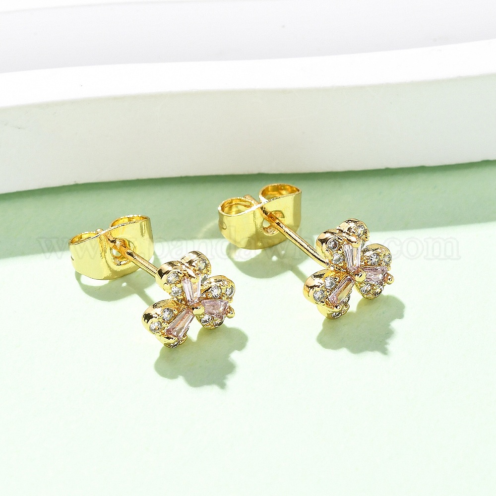 Серьги-гвоздики из латуни с микропаве и кубическим цирконием