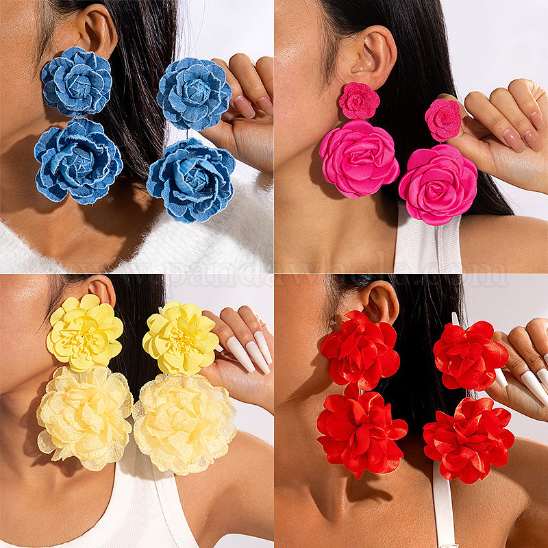 Серьги-гвоздики из цветочного сплава из ткани, с пластиковым