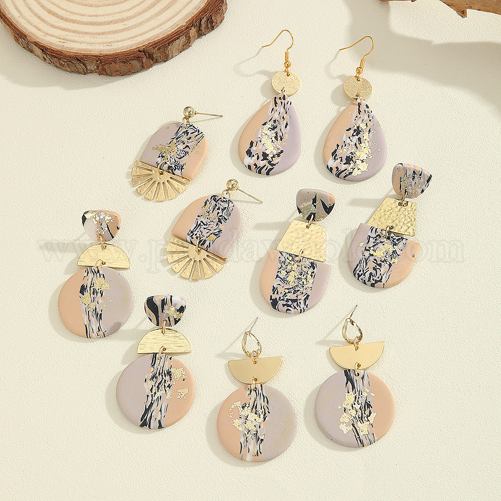 • Плоский Круглый Серьги-гвоздики из полимерной глины и сплава, золотые, плоско-круглые, 52x30 мм