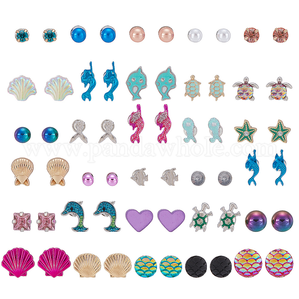 30 Парные серьги-гвоздики из цинкового сплава и смолы, морская тема, разнообразные, платиной и золотом