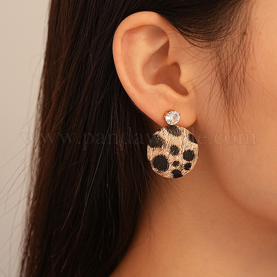 • Сэнди Коричневый Плоские круглые серьги-гвоздики из сплава, со стразами, песчаный коричневый, 32x26 мм