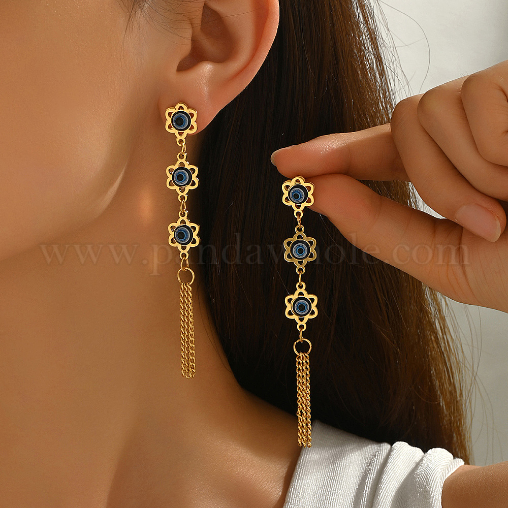 Серьги-гвоздики из нержавеющей стали с кисточками от сглаза