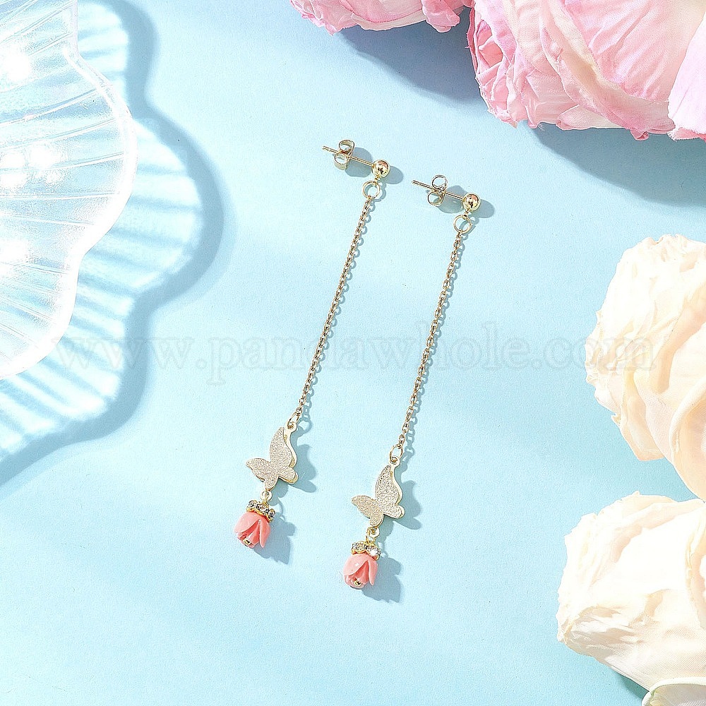 Серьги-гвоздики с кисточками из синтетического коралла, с латунными соединительными подвесками и 304 цепочками из нержавеющей стали