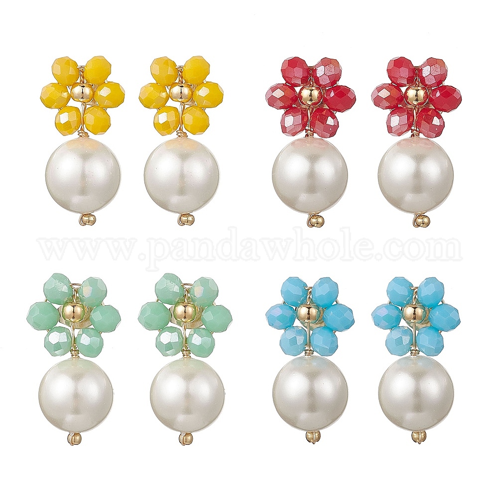 4 пары 4 цветные стеклянные и перламутровые серьги-гвоздики с круглыми подвесками, с латунными серьгами, реальный 24 k позолоченный