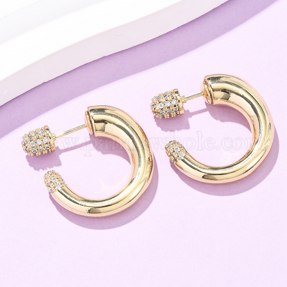 • Прозрачный Серьги-гвоздики в форме буквы С из латуни с микропаве из кубических цирконий, реальный 16 k позолоченный, прозрачные, 22.5x6 мм