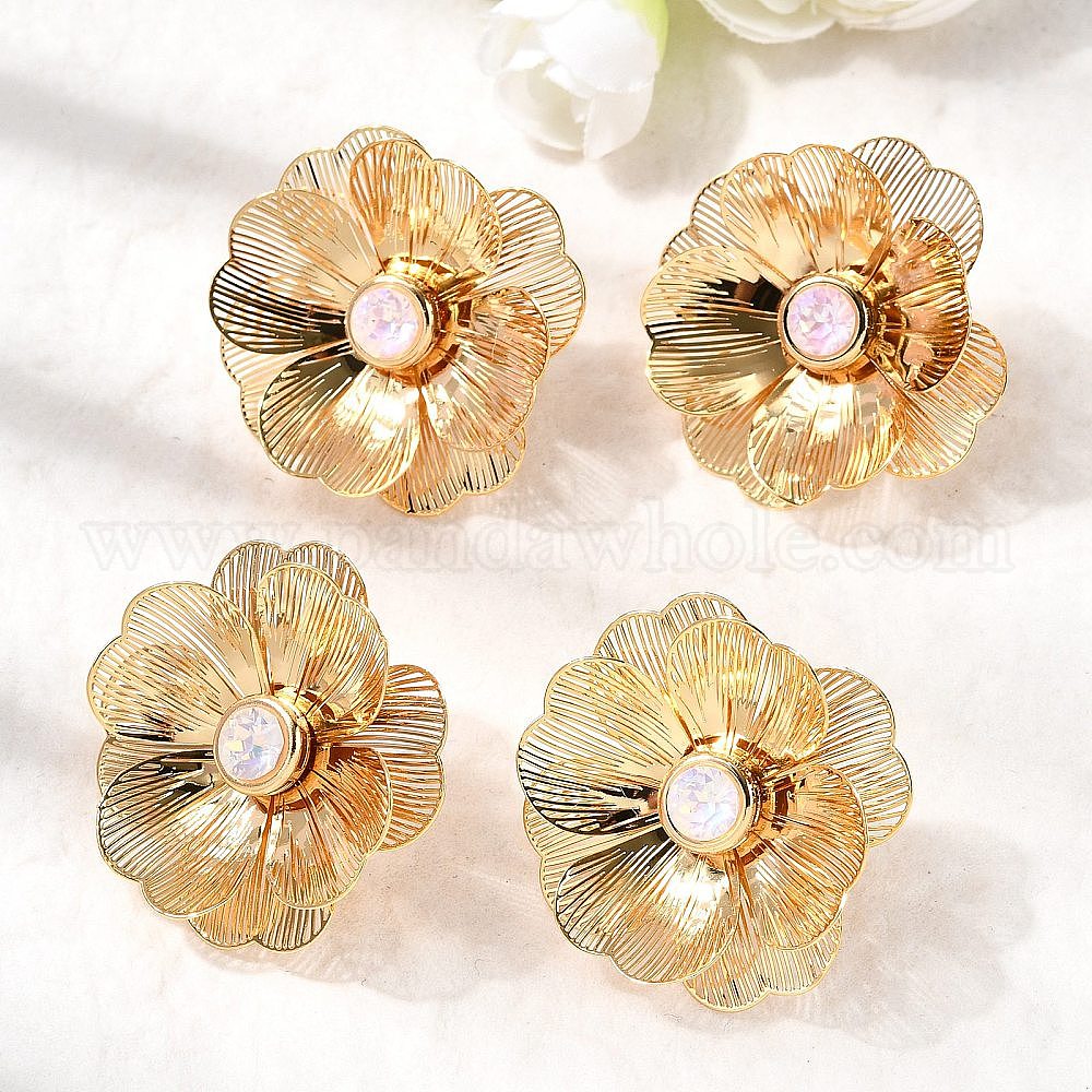 Серьги-гвоздики из латуни и стекла, цветок, без никеля , реальный 18 k позолоченный