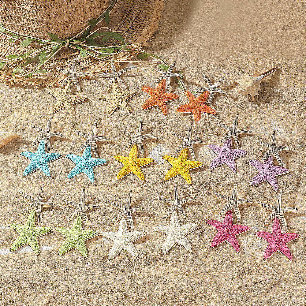 • Темно-Оранжевый Серьги-гвоздики из сплава рафии с морскими звездами, золотые, темно-оранжевый, 75x48 мм