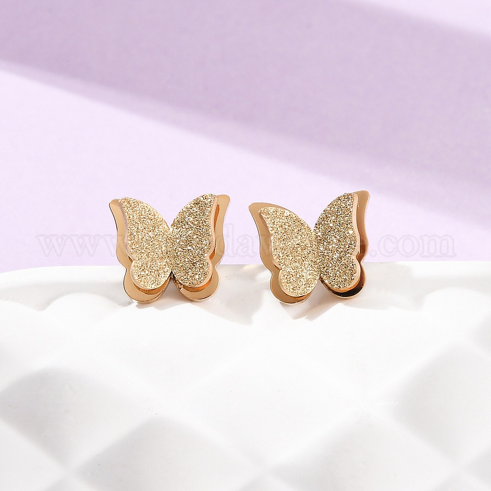 304 серьги-гвоздики из нержавеющей стали для женщин, бабочка, ионное покрытие (ip)
