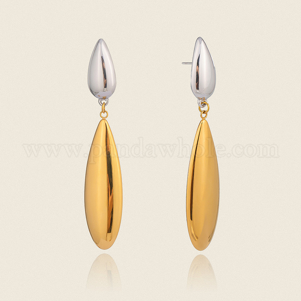 304 двухцветные серьги-гвоздики в форме капли из нержавеющей стали