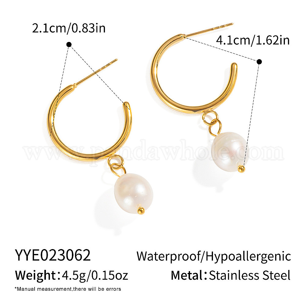 Круглые серьги-гвоздики из нержавеющей стали, с пресноводным жемчугом, золотые