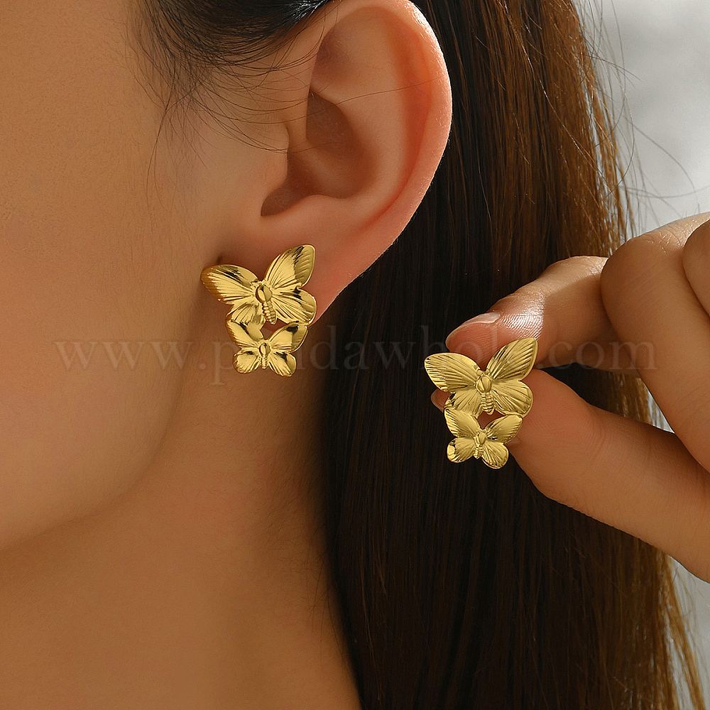 Из нержавеющей стали бабочка серьги стержня, слева и справа