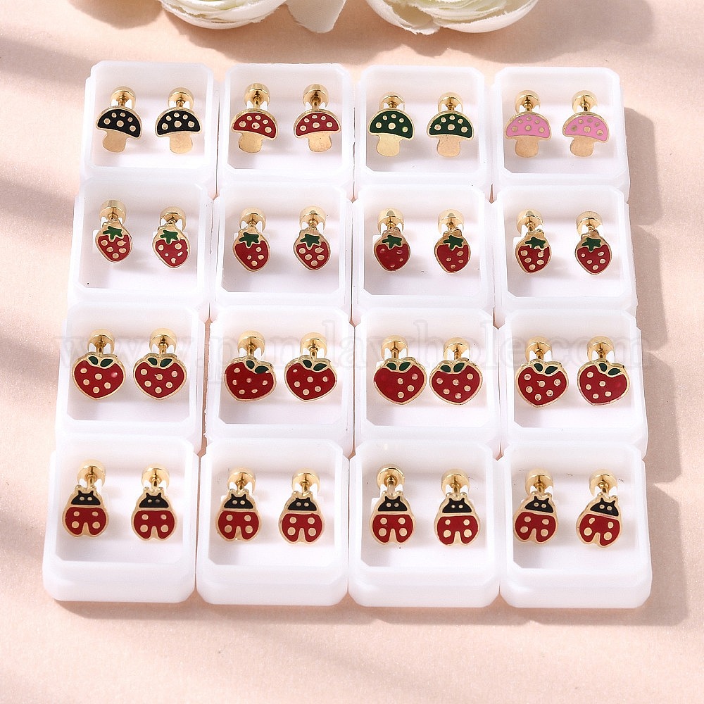304 из нержавеющей стали серьги, с эмалью, золотые