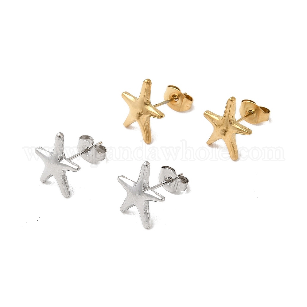 • Золотой 304 из нержавеющей стали серьги, морская звезда, золотые, 10.5x13.5 мм