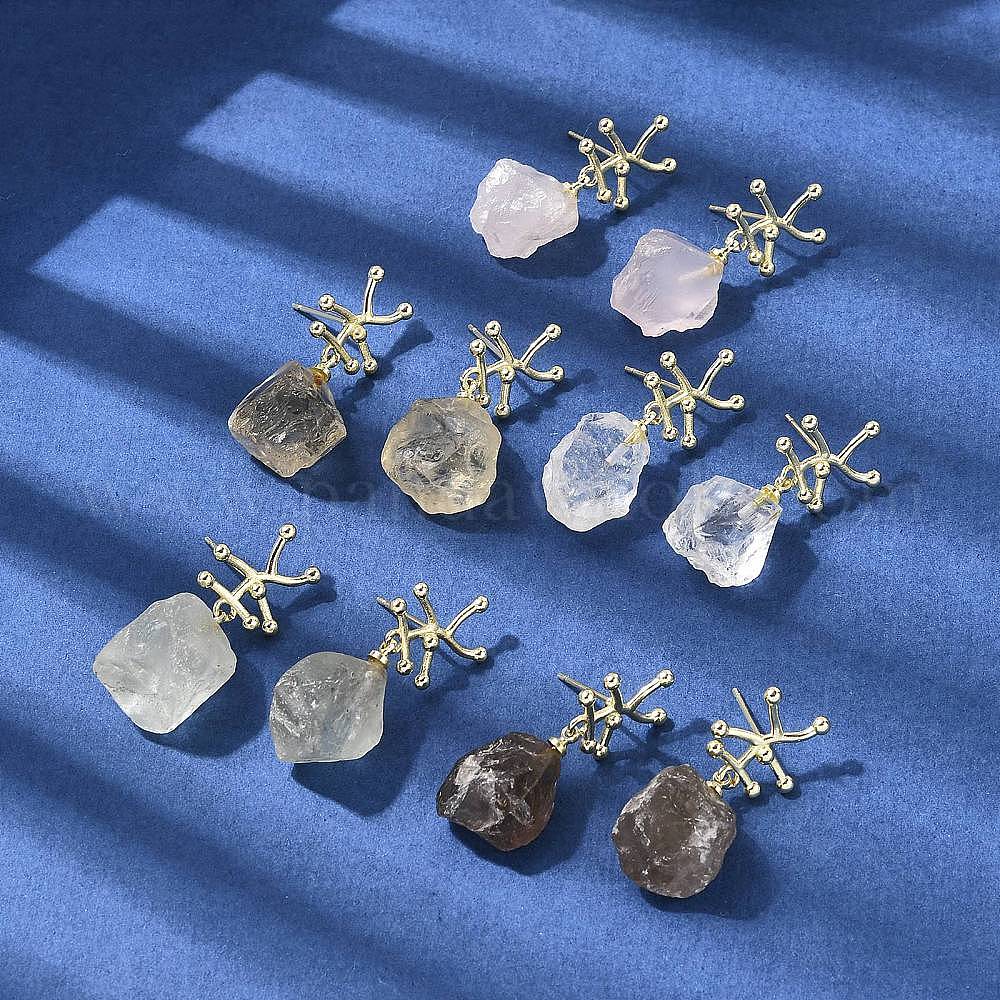 Серьги-гвоздики с подвесками из латунных самородков, с природных драгоценных камней, долговечный, золотые