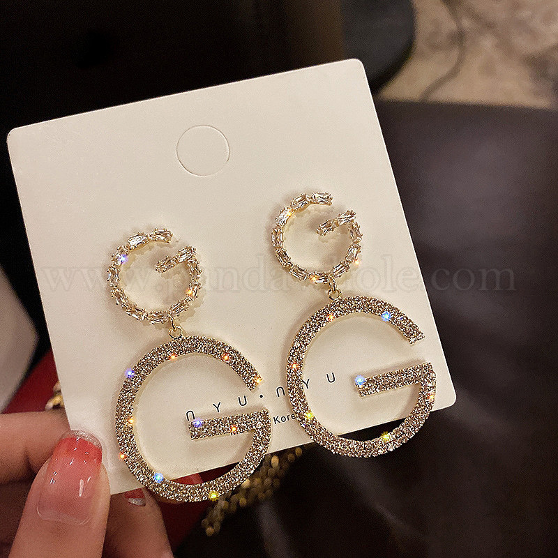 Серьги-гвоздики из сплава с кристаллами и стразами, Буква G