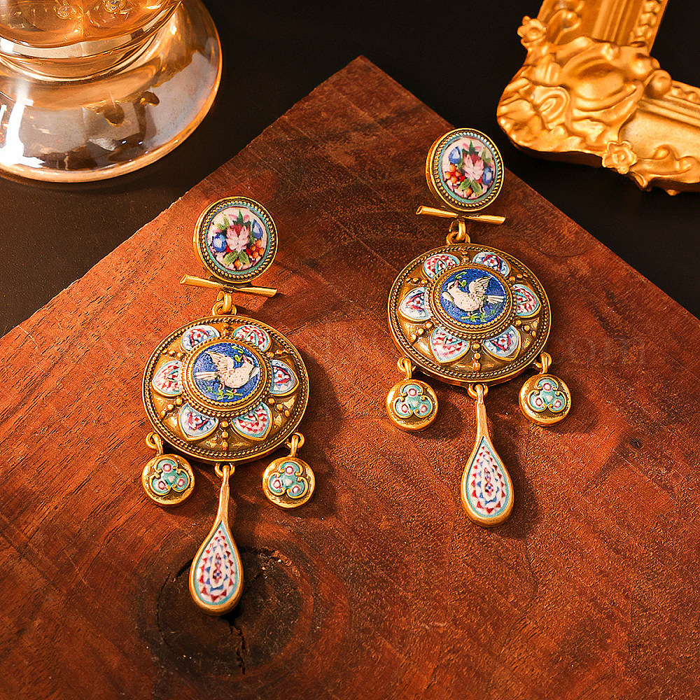 Серьги-гвоздики с подвесками из сплава эмали, плоский круг со слезой