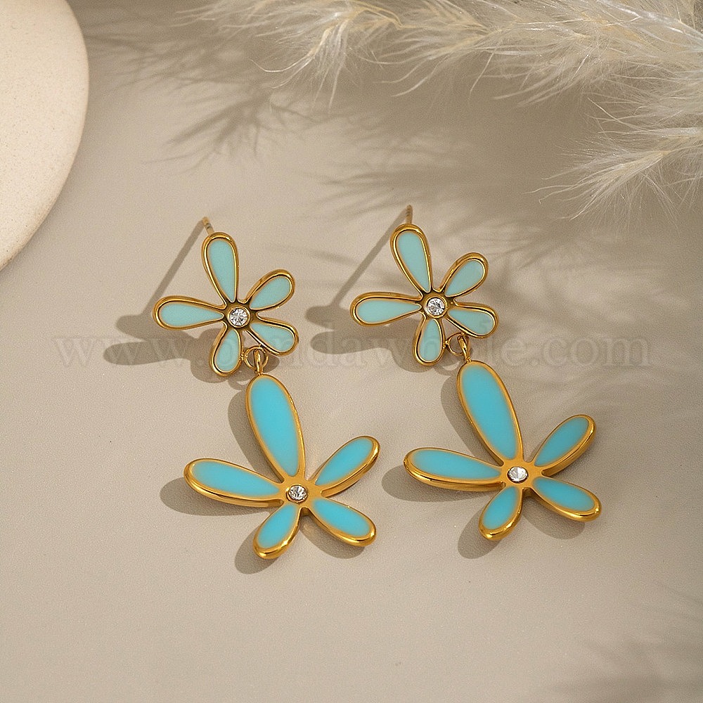 304 серьги-гвоздики с эмалированными цветами из нержавеющей стали, с кристально горный хрусталь, ионное покрытие (ip), без кадмия, без никеля и без свинца