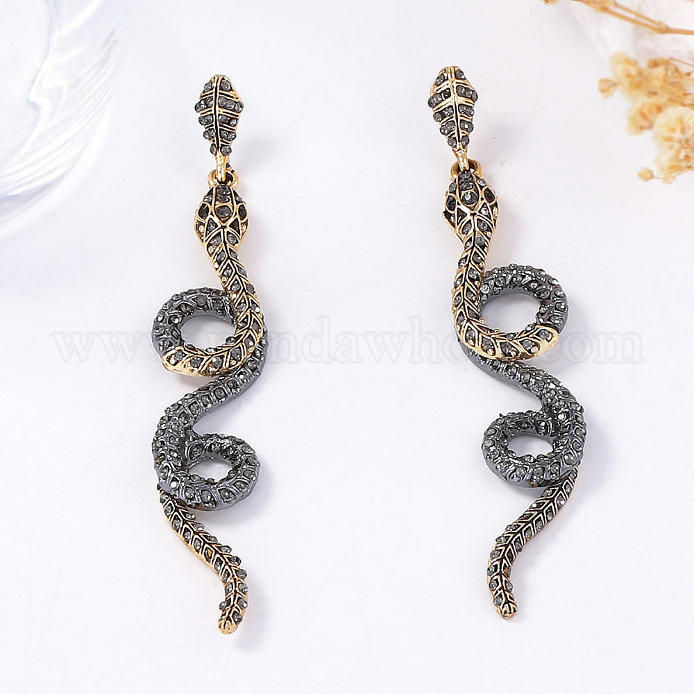 • Черный Алмаз Серьги-гвоздики в форме змеи из цинкового сплава со стразами, золотые, черный алмаз, 89x15 мм