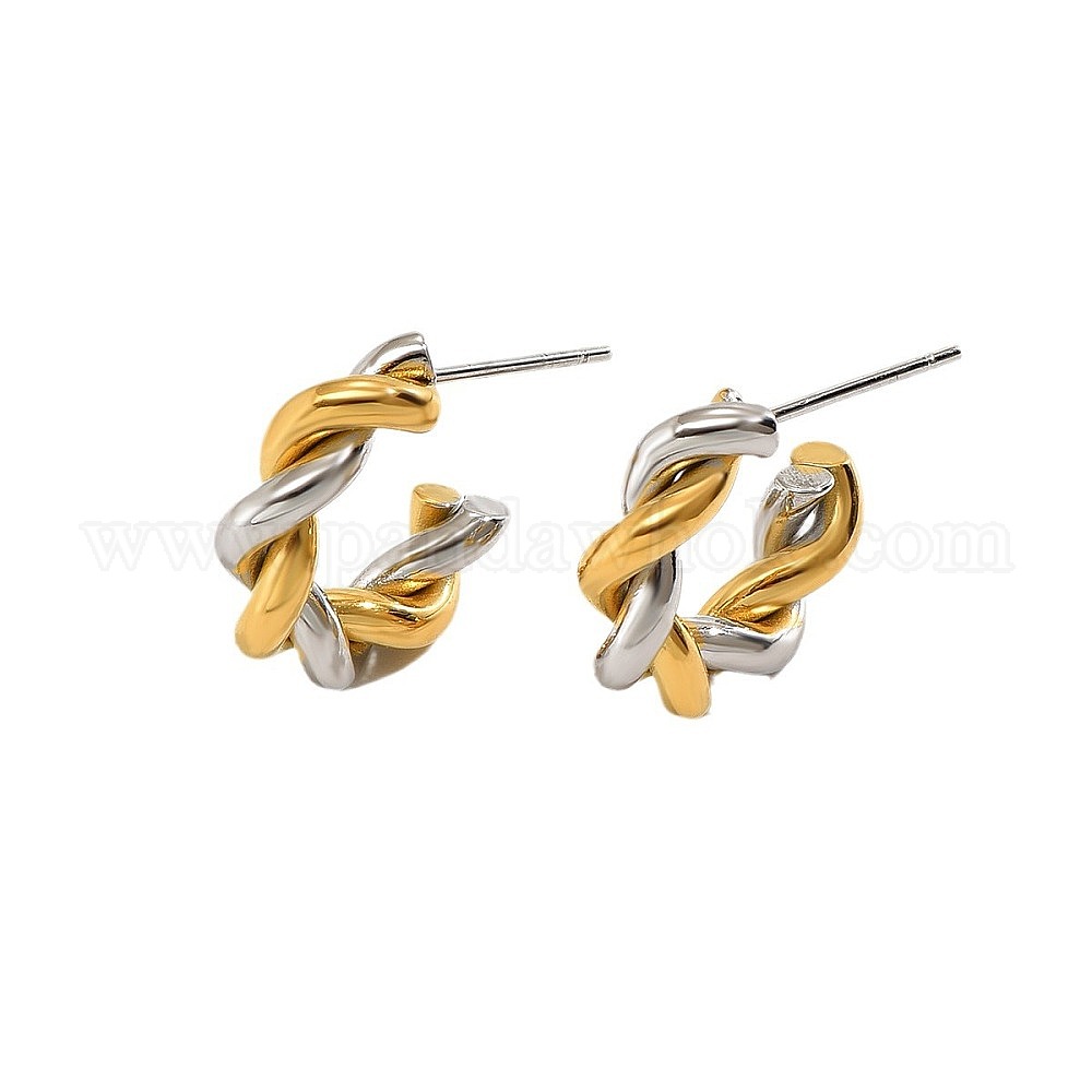 • Золотой & Цвет Нержавеющей Стали Двухцветные серьги-гвоздики в форме буквы С из хирургической нержавеющей стали, золотые и нержавеющая сталь цвет, 316 мм