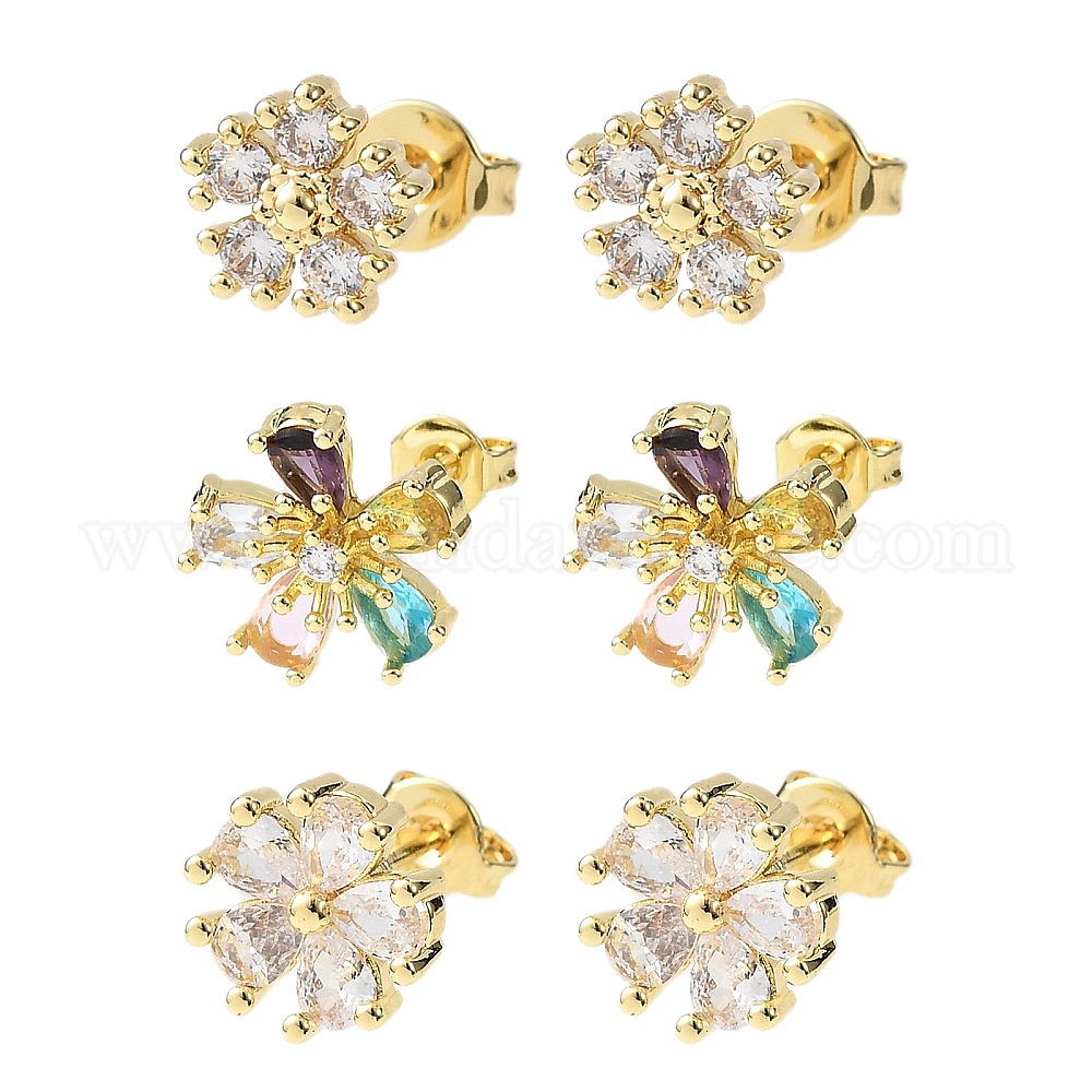 • Настоящее золото 18K Серьги-гвоздики из латуни с микропаве и кубическим цирконием, реальный 18 k позолоченный, 7x7.5 мм