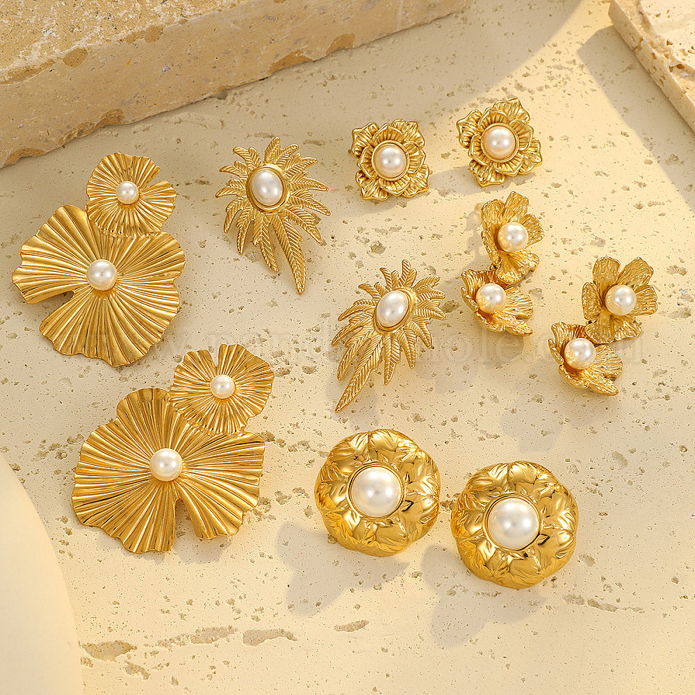 304 из нержавеющей стали серьги, с пластиковой жемчужины, золотые