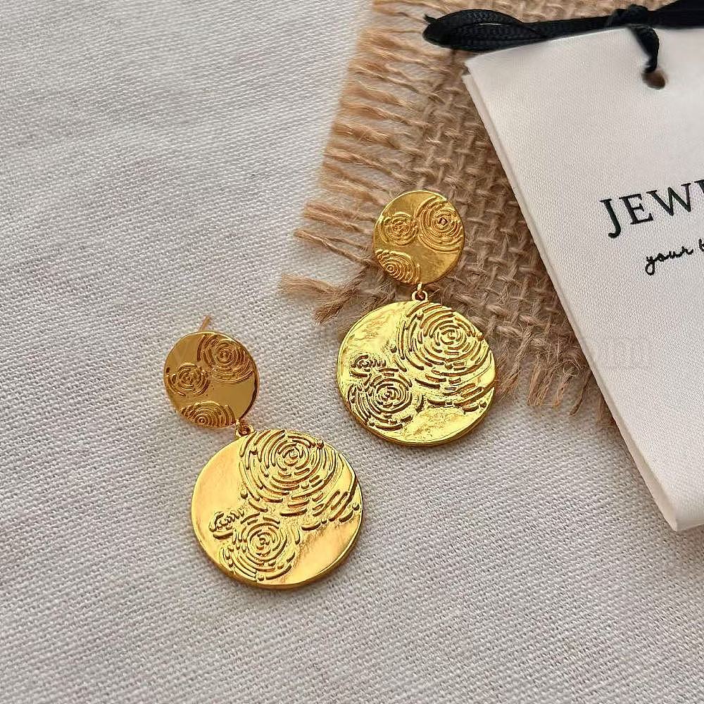 Плоские круглые серьги-гвоздики из латуни с узором из роз