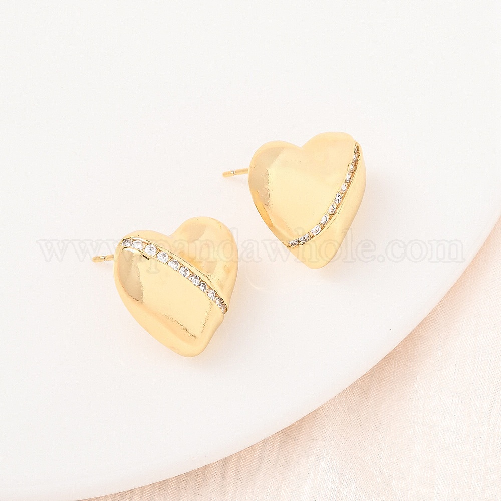 Серьги-гвоздики из латуни с микро-паве и прозрачным фианитом в форме сердца