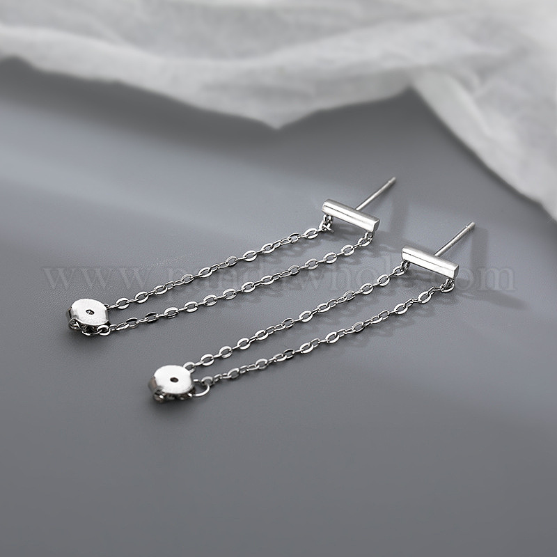 Серьги-гвоздики из латунного троса с цепочкой