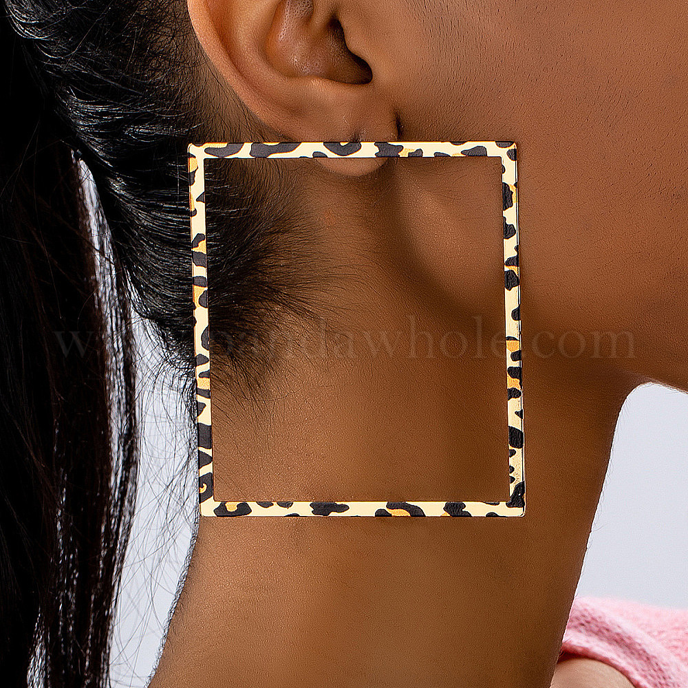 • Золотой Серьги сплава, полый прямоугольник с леопардовым принтом, золотые, 80x70 мм