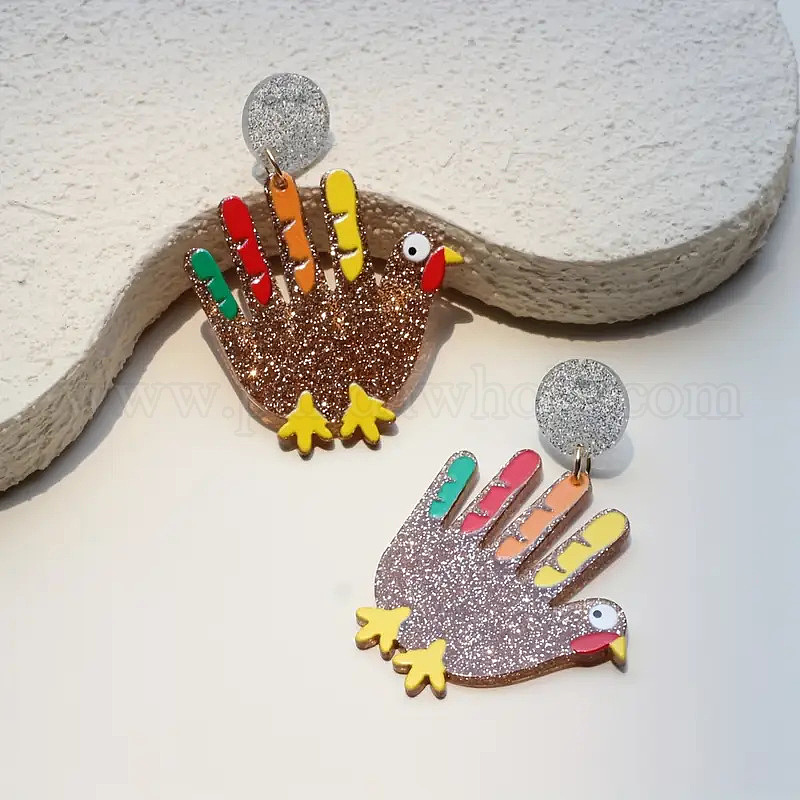 Акриловые серьги-гвоздики, пальма с индейкой (038J9T)