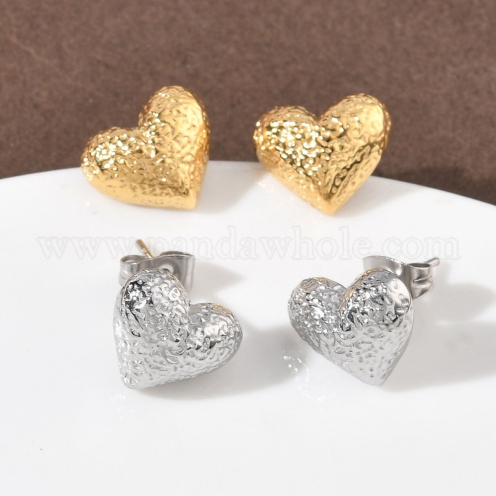 Текстурированное сердце 304 серьги-гвоздики из нержавеющей стали, ионное покрытие (ip)