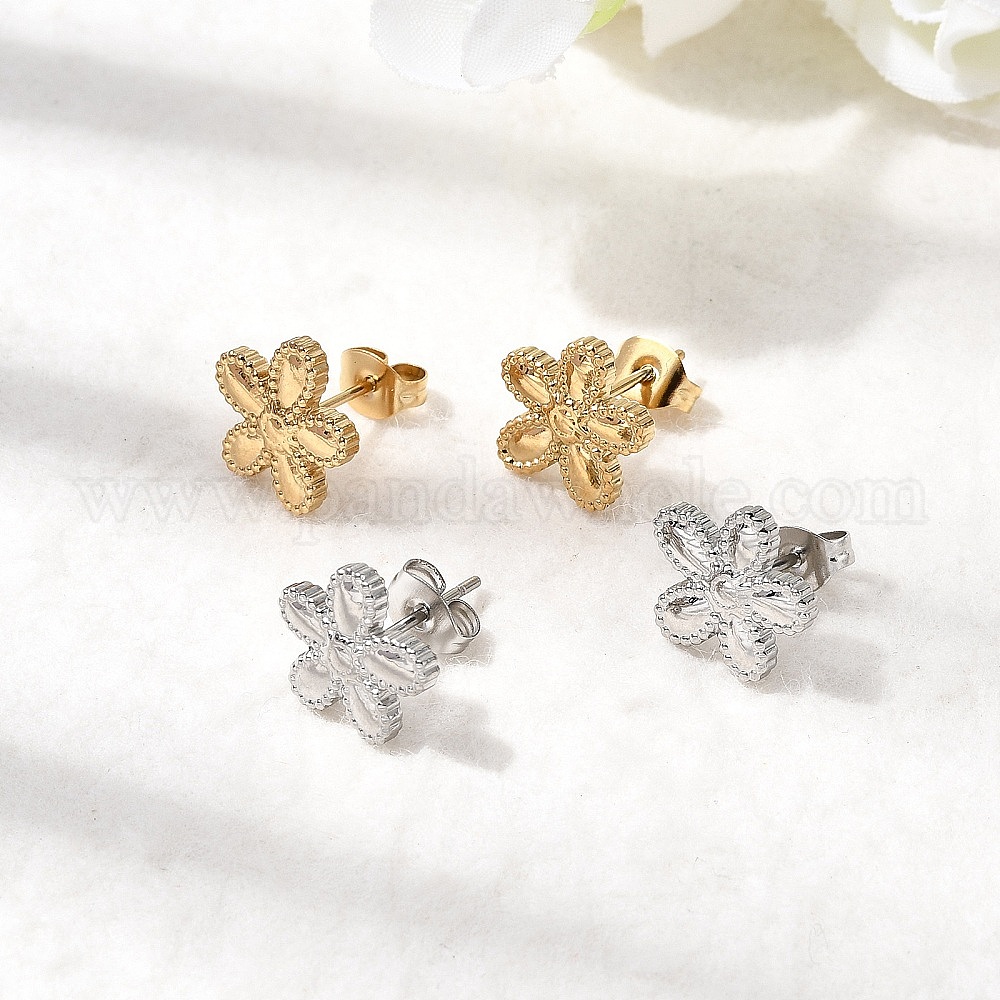 Цветок 304 из нержавеющей стали серьги стержня, ионное покрытие (ip)
