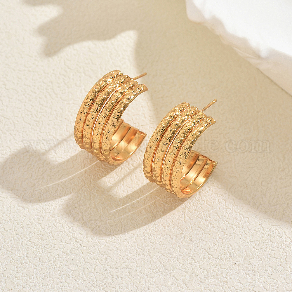 • Золотой Многослойные серьги-гвоздики из нержавеющей стали в форме буквы С, золотые, 28x13 мм
