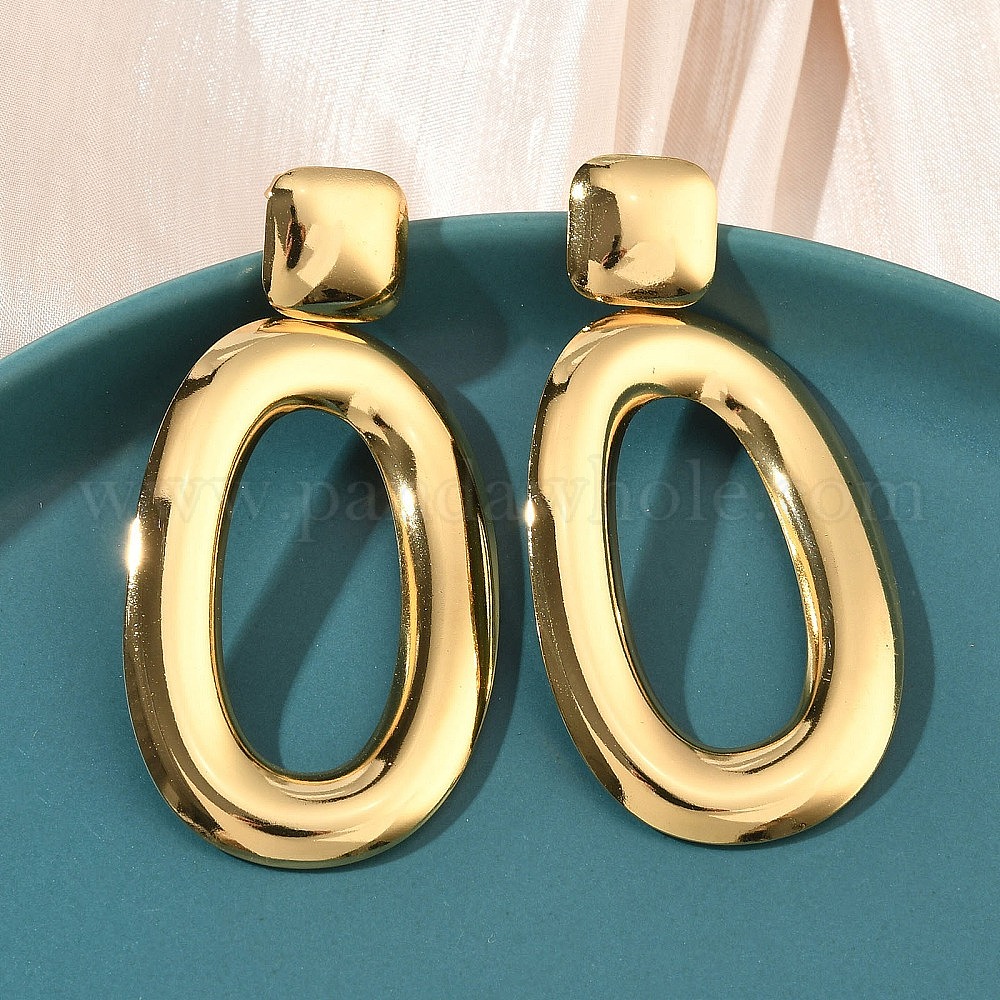 • Настоящее золото 18K Овальные 304 из нержавеющей стали мотаться серьги стержня, ионное покрытие (ip), долговечный, реальный 18 k позолоченный, 56.5x29 мм