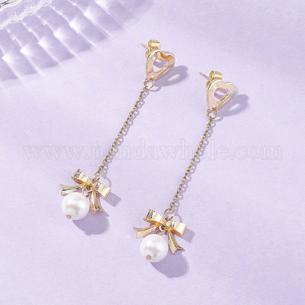 Серьги-гвоздики с подвесками в виде банта и сердца из нержавеющей стали с ракушечным жемчугом