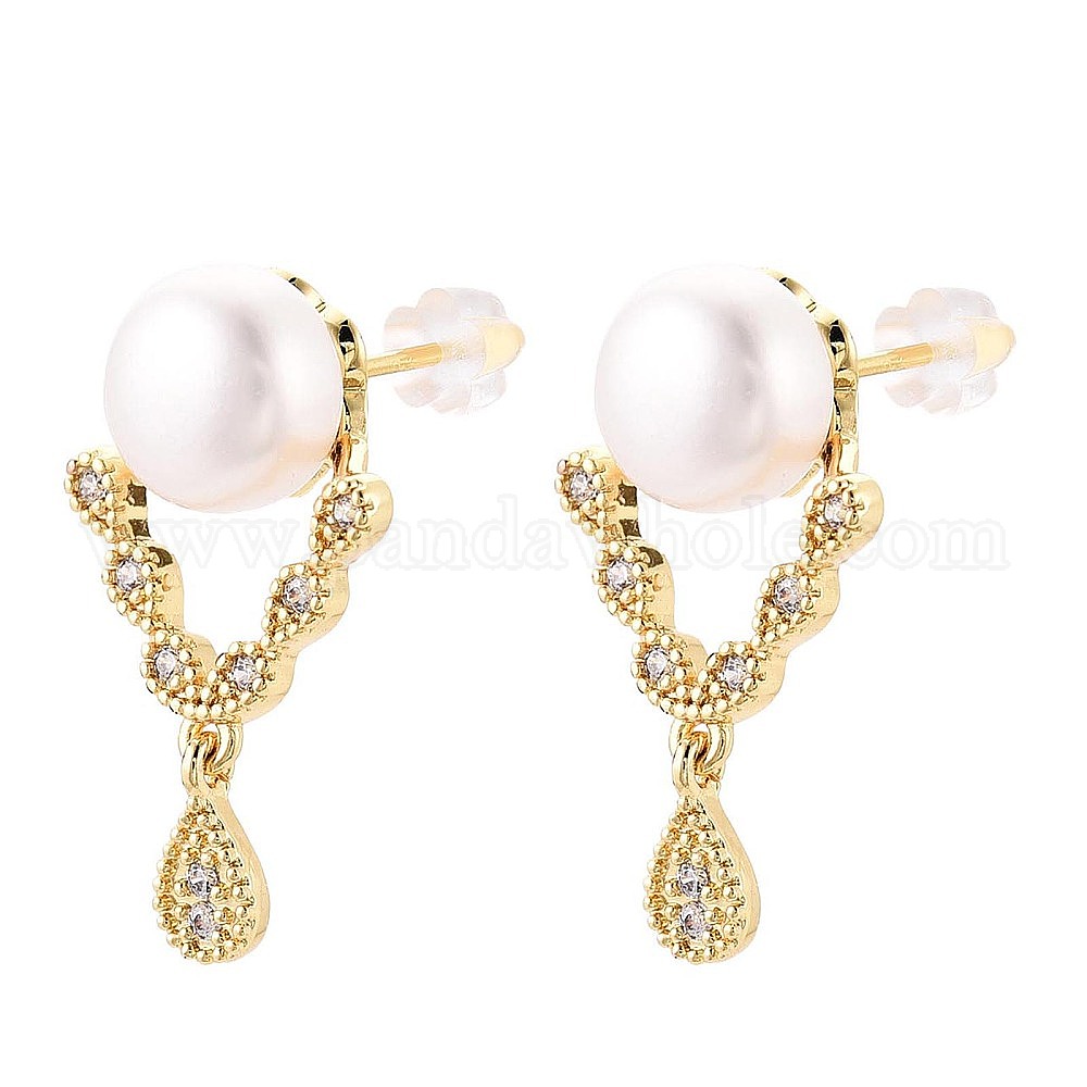 Серьги-гвоздики в форме капли из латуни с микропаве из прозрачных кубических цирконий, с натуральным жемчугом и 925 булавками из стерлингового серебра, долговечный