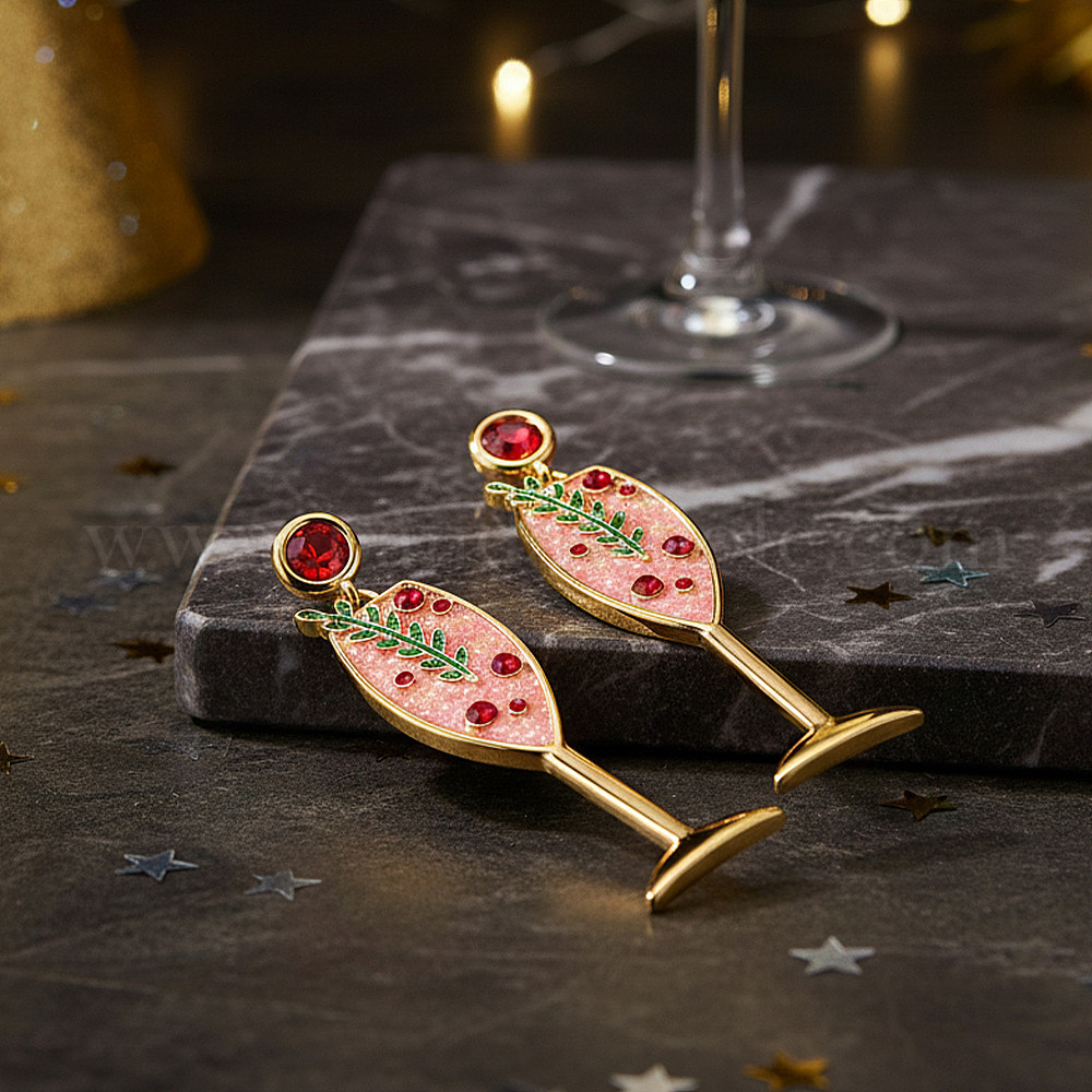 Серьги-гвоздики из латуни в форме кубка, с стразами и эмалью, золотые (038WHP)