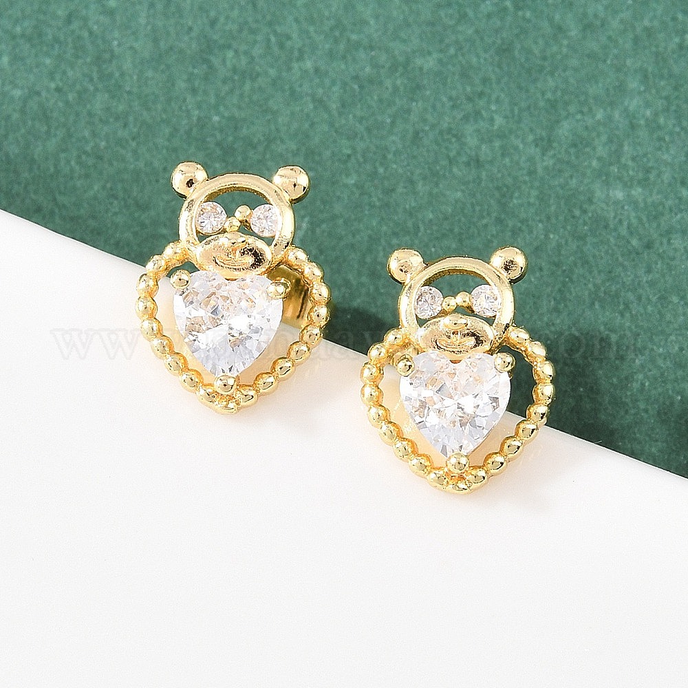 Серьги-гвоздики из латуни с микро-паве и прозрачным фианитом в форме сердца, долговечный, стойки покрытие, без кадмия и без свинца