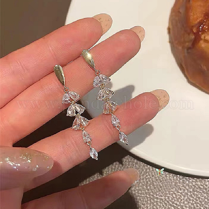• Золотой Серьги-гвоздики из сплава листьев и хрустальных страз, золотые, 51x7 мм