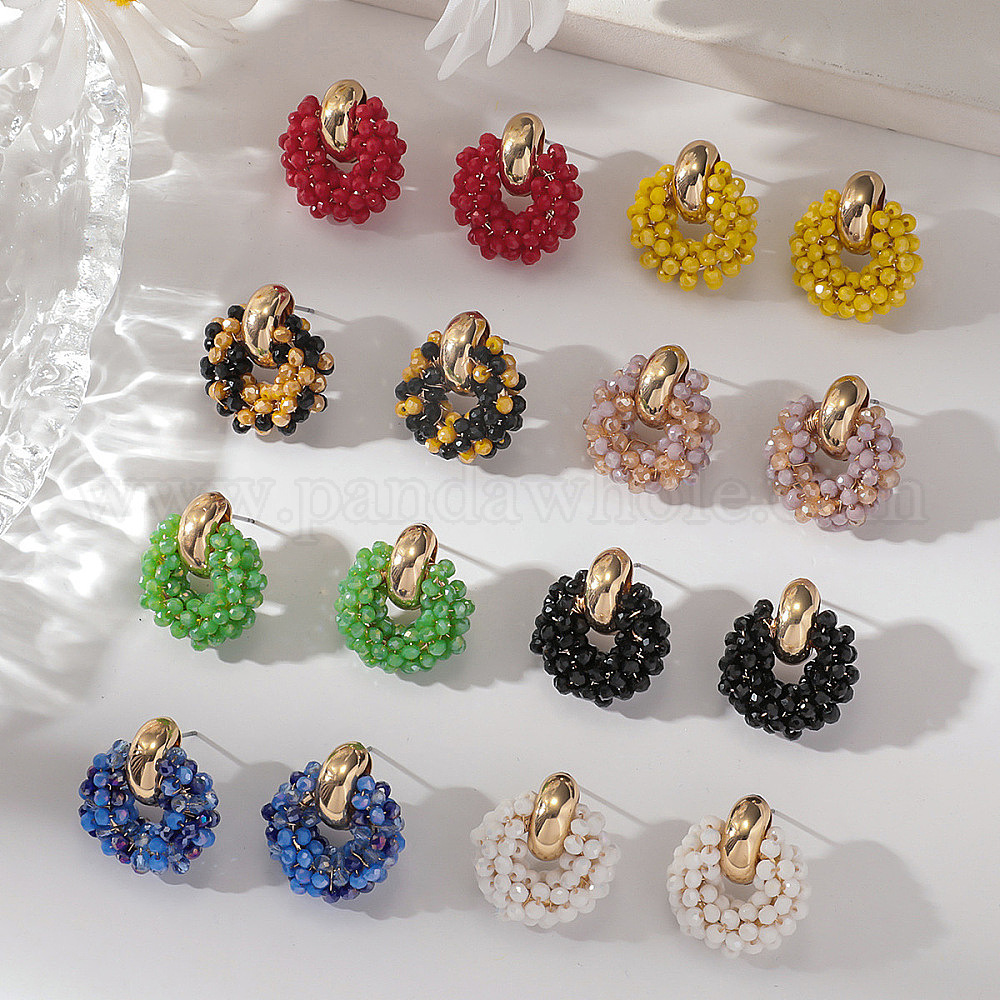 Серьги-гвоздики с железными и стеклянными бусинами, с медной проволокой, золотые