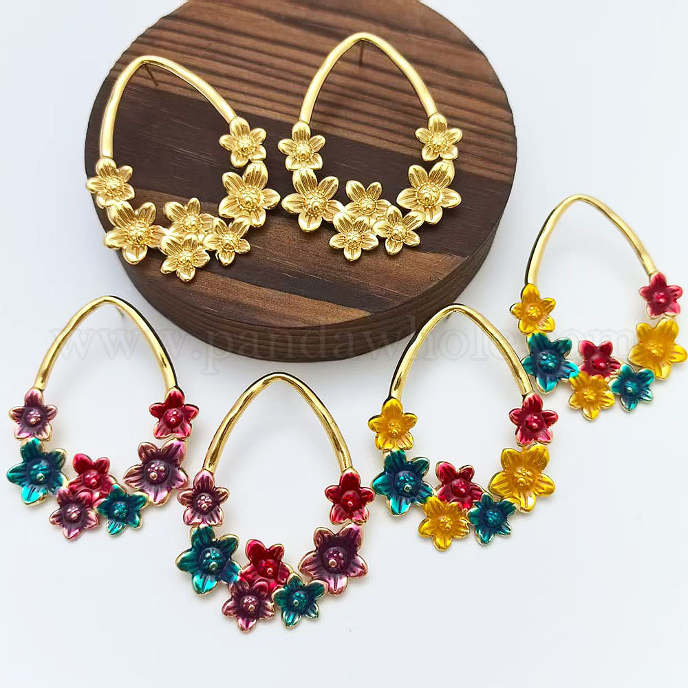 304 серьги-гвоздики из нержавеющей стали с эмалью, слезинка с цветком, золотые
