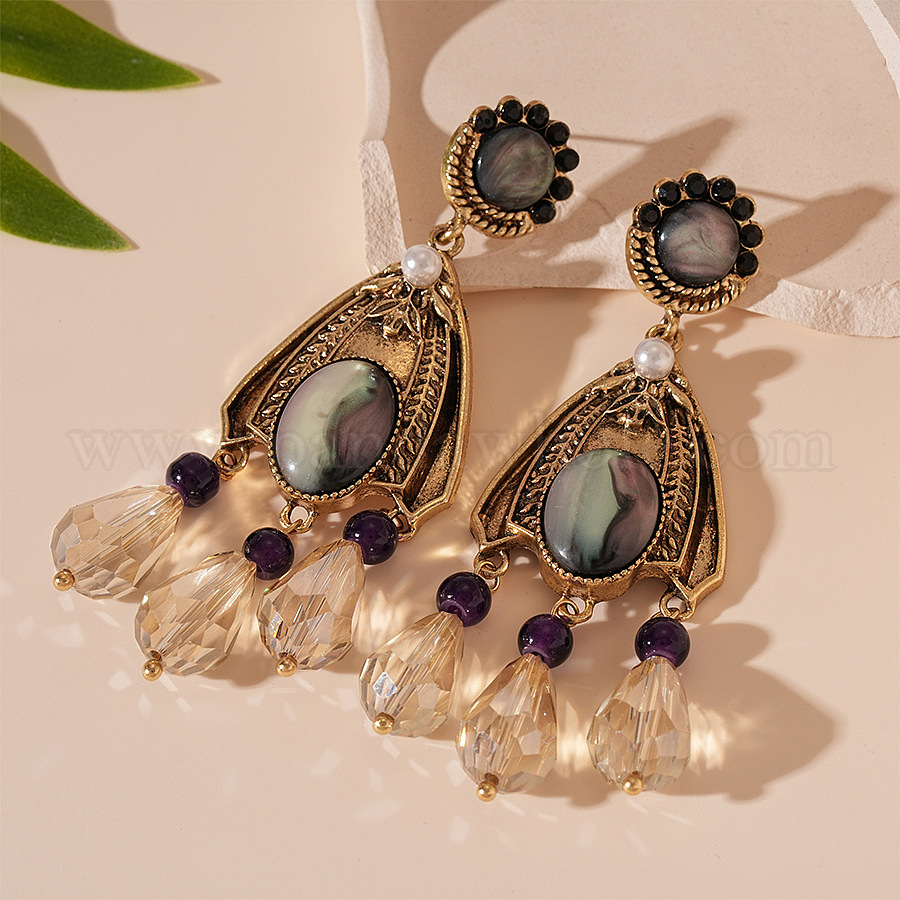 • Серый Серьги-гвоздики из сплава со стразами в форме капли, с имитацией жемчуга, золотые, серые, 90x30 мм